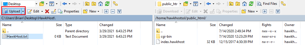 Select the file(s) in the left pane and click Upload.